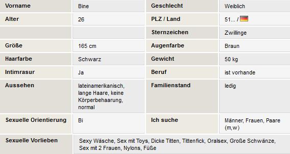 ich bin Bine2008 komme aus Köln ich bin 26 Jahre alt und